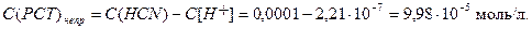 Определим млярную концентрацию непродиссоциировавших молекул HCN: