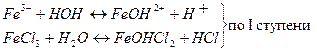б) FeCl3 – соль, образованная слабым основанием Fe(OH)3 и сильной кислотой HCl гидролизуется по катиону: