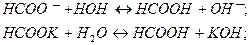 HCOOK – соль, образованная слабой кислотой HCOOH и сильным основанием KOH, гидролизуется по аниону: