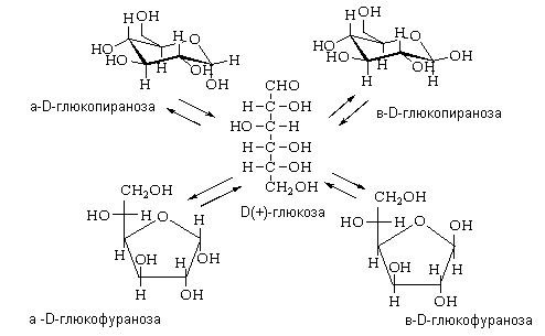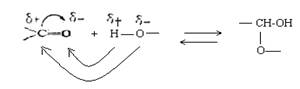 Отсюда, появление пятого гидроксила, названного гликозидным, является следствием внутримолекулярной реакции между карбонильной группой и одним из гидроксилов сахара. Известно, что взаимодействие альдегидов (кетонов) со спиртами приводит к образованию полуацеталей (полукеталей):