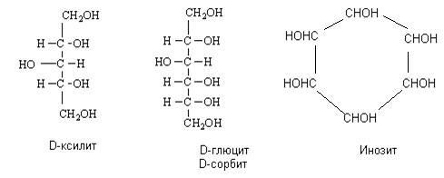 Химически эти вещества в отличие от сахаров всех видов монофункциональны — не имеют карбонильной группировки, а вместо нее находится группа -СН2ОН (у полиолов, образованных от альдегидоспиртов) или –СНОН (у полиолов, образованных от кетоспиртов).