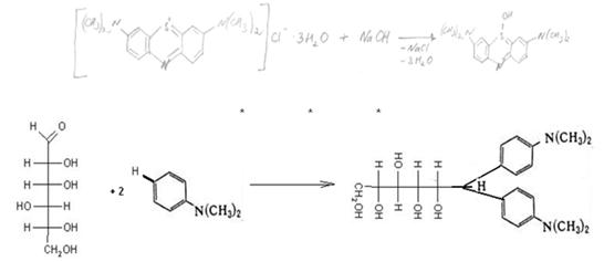 3.Определение редуцирующих сахаров (по Лэну и Эй-Нону). В фильтрате А содержатся редуцирующие сахара (глюкоза, фруктоза и другие монозы, а также дисахариды, обладающие восстанавливающими свойствами,— мальтоза, лактоза и др.). Хотя сахароза тоже переходит в фильтрат, но для количественного определения ее необходимо подвергнуть инверсии. Метод определения редуцирующих сахаров основан на титровании реактива Фелинга фильтратом А в присутствии метиленовой сини. Сахара, оставшиеся в небольшом избытке после восстановления окиси меди в закись, реагируют с метиленовой синью, восстанавливая ее в лейкосоединение: