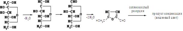 Определение основано на способности кетосахаров давать вишневую окраску с резорцином в кислой среде: