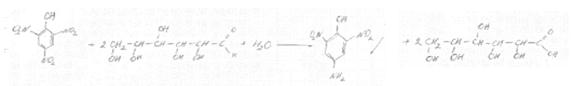 При взаимодействии редуцирующих сахаров с пикриновой кислотой они окисляются до соответствующих кислот, а пикриновая кислота восстанавливается в пикраминовую, обладающую красной или буровато-красной окраской: