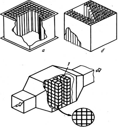 Катализатор может быть порошкообразным материалом различной дисперсности или закрепляться на поверхности металлических или керамических носителей. Для удобства изготавливают блоки объемом 1 м3 (рис. 3), которые послойно соединяют в реакторе (рис. 4).