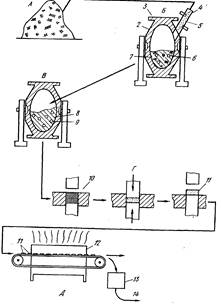 Можно также перерабатывать скрап с большим размером частиц, хотя при толщине металла более 0,8 мм возникают существенные трудности при измельчении, приводящие к повышению капиталовложений в процесс. Используемые частицы скрапа должны иметь приблизительно одинаковый химический состав; лучше всего использовать скрап, получаемый в результате обработки одной и той же партии металла.