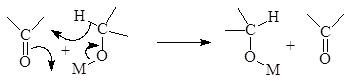 Алкоксиды первичных и вторичных спиртов могут передавать гидрид анион к карбонильным группам по схеме:
