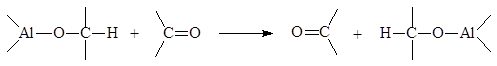 При этом карбонильная группа превращается в спиртовую, а спиртовая в карбонильную, т.е. альдегид или кетон восстанавливается в спирт, а спирт окисляется в альдегид или кетон. Наиболее распространенным восстановителем является изопропиловый спирт. Алкоголяты можно использовать лишь в качестве катализаторов.