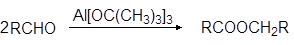 Характерная особенность альдегидов вступать в реакции окисления-восстановления хорошо проявляется в реакции Тищенко. Если к альдегиду прибавить небольшое количество трет-бутилата алюминия то начинается бурная реакция, приводящая к образованию сложного эфира: