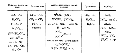Таблица 3. Важнейшие неорганические соединения углерода.