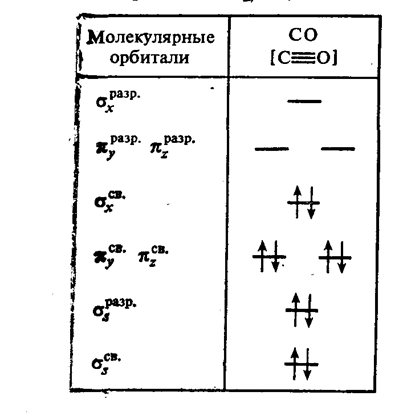 Оксид углерода СО (угарный газ): по строению молекулярных орбиталей (табл.4).