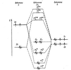 Рисунок 2. Энфгетическая диаграмма образования молекулярных орбиталей С02.