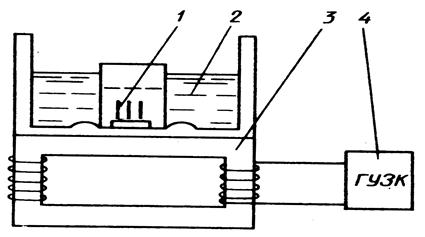 При ультразвуковой очистке (рис. 3) пластины 1 помещают в ванну с водой (эмульсией) 2, на которую передаются вибрации через вибратор 3 от генератора 4. Механические вибрации способствуют перемешиванию растворителя и тем самым ускоряют процесс.