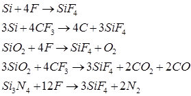 . Уравнения, характеризующие химические реакции травления кремния, оксида и нитрида кремния в плазме