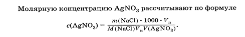 Концентрацию растворов некоторых солей можно определить, используя реакции обмена, протекающие с образованием осадков малорастворимых веществ в процессе титрования. Например, для количественного определения хлоридов (или бромидов) металлов можно применить реакцию образования осадка галогенида серебра.