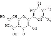 -H, то соединение носит название кемферол. В мирицетине все три R замещены ОН-группами.