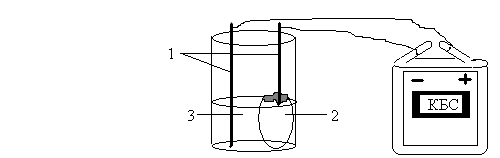 Рис.5. Электролиз раствора хлорида натрия с применением пористой перегородки: 1 – графитовые стержни; 2 – раствор хлорида натрия; 3 – раствор фенолфталеина. Напишите уравнение реакции.