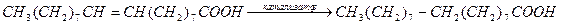 В состав различных жиров входят в различных соотношениях пальмитиновая, стеариновая, олеиновая и другие кислоты. В растительных (жидких) жирах преобладают непредельные кислоты (содержащие этиленовые связи), а в животных (твердых) предельные кислоты, т. е. не содержащие двойных связей. Потребности в твердых животных жирах большие, чем в растительных. Поэтому жидкие растительные жиры переводят в твердые каталитической гидрогенизацией. В этом процессе остатки непредельных кислот в глицеридах превращаются (присоединением водорода) в остатки предельных кислот. Например,