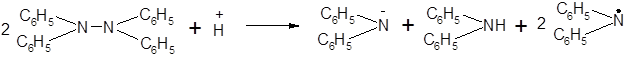 Тетразамещенным гидразинам 4 уделяется по сравнению с другими классами меньше внимания. Тетрафенилгндразин, однако, интересен проявлением особых свойств из-за перекрывания объемистых фенильных групп, окружающих маленькие атомы азота. Даже при температуре жидкого воздуха тетрафенилгидразин разлагается в присутствии кислоты с образованием ионов и, возможно, радикалов. Очевидно, в этом соединении связь азот — азот ослаблена вследствие стерического перекрывания, так как другие тетразамещенные гидразины совершенно устойчивы по отношению к кислотам: