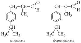 Известны и обратные случаи. Цикламен-альдегид (цикламаль) — вещество с нежнейшим цветочным запахом — одно из ценнейших веществ, содержит насыщенную боковую цепочку, а форцикламен, имеющий двойную связь в этой цепочке, обладает слабым неприятным запахом: