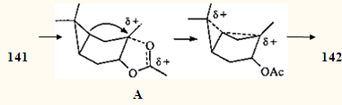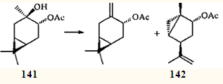 В 1966 г. было показано, что одним из продуктов дегидратации моноацетата 3β, 4α-карандиола 141 является ацетат транс-1-метил-4-изопропенилбицикло[3.1.0]гексан-2-ола (142).121