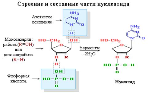 Нуклеотид - фосфорный эфир нуклеозида. В состав нуклеозида входят два компонента: моносахарид (рибоза или дезоксирибоза) и азотистое основание.