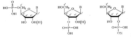 (где С — первичный или вторичный атомы углерода остатка углевода). При гидролизе ДНК и РНК в зависимости от условий реакции, образуются нуклеотиды с разным положением фосфатного остатка: