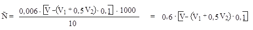 V – количество 0,1 М раствора NaOH, израсходованное на титрование дистиллята, см3;