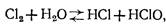 С образованием хлорноватистой кислоты, которая диссоциирует на соляную кислоту и атомарный кислород (в нейтральной или щелочной среде), обладающий сильными окислительными свойствами. Ю. Ю. Лурье считает, что хлорноватистая кислота диссоциирует в зависимости от рН с образованием гипохлоритного иона (ОСl-), при этом окислительное воздействие на микроорганизмы оказывает как сама хлорноватистая кислота, так и главным образом гипохлоритный ион: