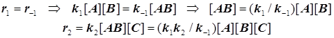 Рассмотрим тримолекулярное превращение вида: