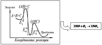 А) Известно всего несколько реакций в газовой фазе с участием оксида азота, кинетика которых соответствует 3-му порядку (Примеры см. у Панченкова и Лебедева). Однако стехиометрические уравнения баланса вовсе не обязаны соответствовать схеме элементарных актов.