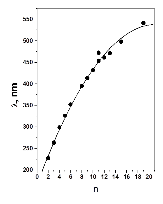 l = (138 ± 3) + (43,6 ± 1,2)n – (1,6 ± 0,1)n2 нм