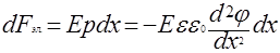 Электрическая сила, действующая на слой жидкости dx (в расчете на единицу площади поверхности), равна: