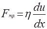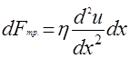 Сила трения и её дифференциал, приходящийся на единицу площади (согласно закону Ньютона), составляют: