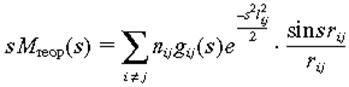 где Мтеор(s) – молекулярная интенсивность рассеяния как функция (l – длина волны электронов, q – угол рассеяния); ni j – число одинаковых пар атомов; gi j – табличный множитель, определяющий рассеивающую способность данной пары атомов (приближенно пропорционален Zi Zj – произведение порядковых номеров атомов i и j ).