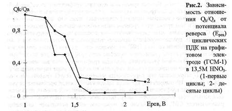 1. Комплексом электрохимических методов с привлечением РФА и ДСК изучены процессы, протекающие на дисперсном графитовом аноде в растворах HN03. Показано, что процессу анодного интеркалирования предшествует индукционный период, во время которого происходит заряжение двойного электрического слоя и окисление ПФГ. Внедрение нитрат-ионов, предположительно, сопровождается гидролизом или совнедрением воды с образованием переходных форм СВГ между нитратом и окисью графита.