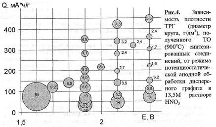 3. В растворах HN03 (13,5-3,0 М) выявлено влияние режима анодной обработки дисперсного графита на свойства получаемых терморасширяющихся соединений графита. Показана возможность получения соединений с заданной степенью терморасширения и пониженными температурами термообработки при минимальных затратах энергии и реагентов.