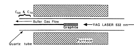 Рис. 2. Схема установки лазерного испарения графита для получения фуллеренов и эндометаллофуллеренов.