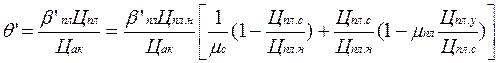 где θ' – критерий экономического подобия; β'пл – номинальный расходный коэффициент по платине, г/т кислоты; Цпл.н и Цпл.с – цены новой платины и платины, возвращаемой на аффинажный завод, руб/г; Цпл.у – цена уловленной платиновой пыли, руб/г; μпл – степень улавливания платиновой пыли; μс – степень износа платиновых сеток.