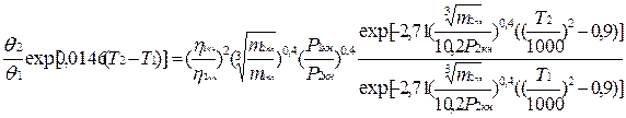 Для интервала давления 1,02 ÷ 10,2 ат, числа сеток на катализаторе 3 ÷ 20 и температуры 1100 ÷ 1250 К после преобразования можно получить формулу для приближённого расчёта интервала температур: