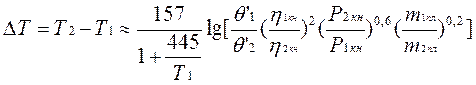 где T2 – оптимальная температура при заданных значениях θ'2, P2кн, η2кн и m2пл; T1 – оптимальная температура при θ'1, P1кн, η1кн и m1пл; ΔT – приращение оптимальной температуры, обусловленное изменением этих параметров.