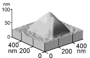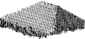 Рисунок 3. СТМ изображение простого "hut" островка, полученного напылением чистого Ge на Si(100). Высота островка ~3 нм, основание 20 и 40 нм. Плоскости огранки островка имеют направление {105}.