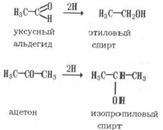Восстановление альдегидов и кетонов. При восстановлении альдегидов образуются первичные, а при восстановлении кетонов — вторичные спирты: