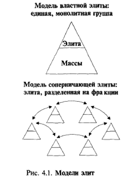 Некоторые теоретики вместе с тем утверждают, что в каких-то случаях власть элиты не исключает принципа политической подотчетности. Речь идет о концепции конкурентного элитизма (иногда называемого демократическим элитизмом), исходящей от факта соперничества элит – нечто противоположное модели властвующей элиты, где она предстает единым целым, изнутри связанным общими интересами. Другими словами, элита, вбирая в себя наиболее видных представителей из самых разных, подчас конкурирующих групп, всегда внутренне расколота. Эту концепцию часто связывают с «реалистической» моделью демократии Иосифа Шумпетера, предложенной им в книге «Капитализм, социализм и демократия» (1942):