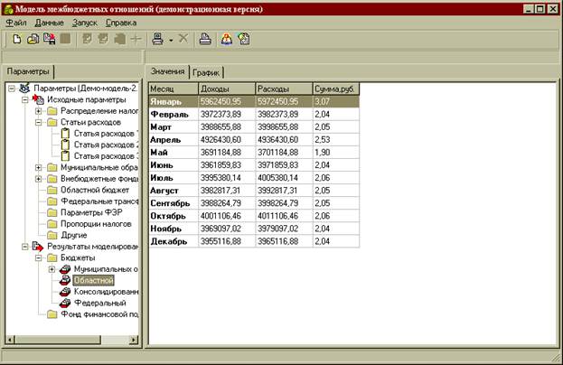 Данная программа представляет собой демонстрационную версию программного комплекса "Анализ и прогноз бюджетных и социально-экономических процессов в регионе", разрабатываемого Владимирским государственным университетом совместно со Счетной Палатой Владимирской области.