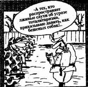 В-четвертых, одно из центральных мест в тоталитарных системах отводится системе насилия, механизму репрессий, призванных обеспечивать и поддерживать контроль власть имущих над всем обществом и его гражданами. … террор — неотъемлемое средство его внутренней политики, а страх граждан перед произволом, необоснованными репрессиями — один из важнейших гарантов стабильности тоталитарных систем.