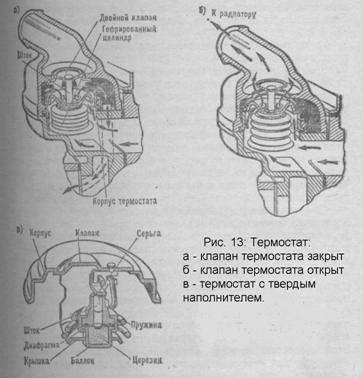 Термостат. В период пуска двигателя для уменьшения износа желательно возможно быстрее прогреть его до температуры 80 . 90 °С и при дальнейшей эксплуатации поддерживать эту температуру.