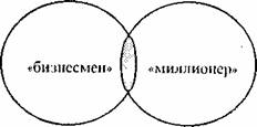 Понятия, объемы которых частично совпадают, несмотря на то, что содержание их может быть различно, находятся в отношении перекрещивания, пересечения: «студент» и «спортсмен», «бизнесмен» и «миллионер». Они изображаются пересекающимися кругами. Заштрихованная часть кругов показывает степень совпадения объемов разных по содержанию понятий.