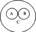 Соподчинение /координация/ — это отношение между объемами двух или нескольких понятий, исключающих друг друга, но подчиненных более общему родовому понятию. Например, понятия «продовольственные товары» и «непродовольственные товары» принадлежат объему понятия «товары». Их можно изобразить отдельными неперекрещивающимися кругами /А и В/ внутри более обширного круга /С/. Это соотношение видов и общего рода: