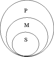 Понятие, входящее в обе посылки и отсутствующее в заключение, называется средним термином – «М».Отношения между терминами силлогизма могут быть изображены в виде схемы: